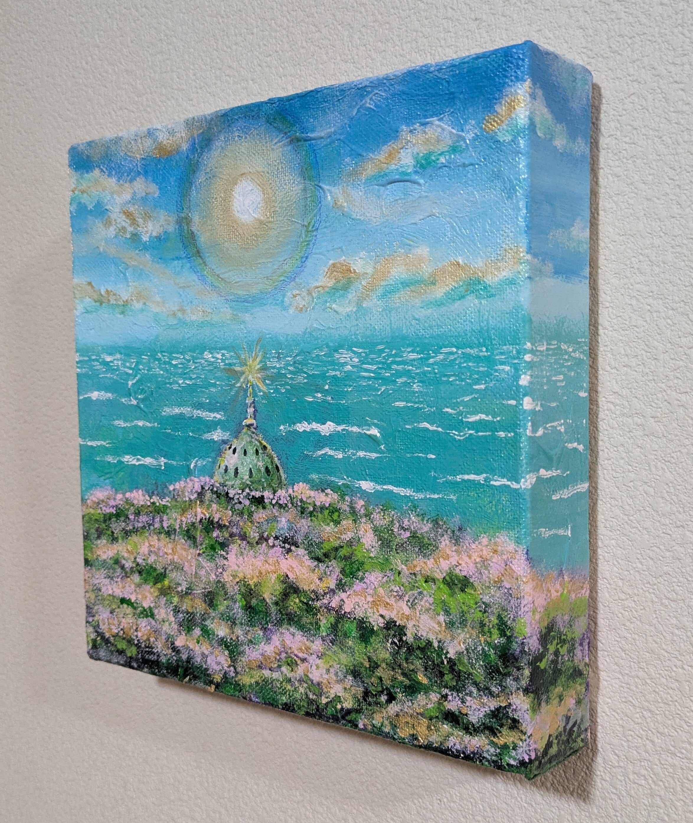 その上には、太陽を囲む柔らかな光の輪 ― ハロ ― が広がっています。